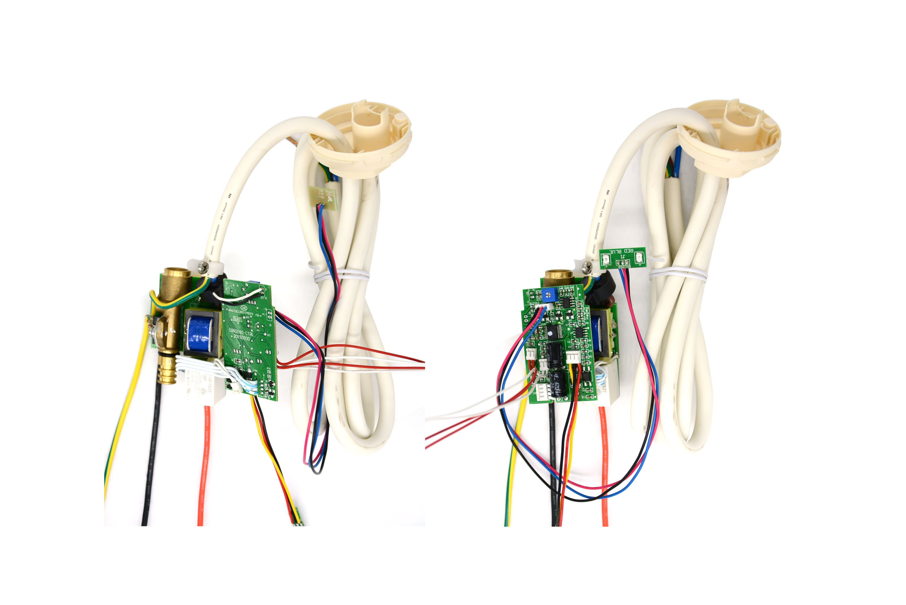 Product features: 1. Detect the water flow rate. When the flow ¶rate is greater than 1L / min, start the heating, reach the constant temperature withi☆n 10 seconds, and the red light is always on. When it is lower than 0.8l/min, turn ×off the heating, and the blue light is always on; 2. Temperat ure control accuracy: 37 ± 1 ℃; 3. If leakage current > 10mA is detected, the red light σflashes for alarm; 4. Ultra high temperature alarm: when the temperature exceeds 135 ℃, the r>ed light flashes quickly; 5. NTC abnormality: when the inlet♥ NTC and outlet NTC are short circuited / open circ"uited, the red light flashes.
